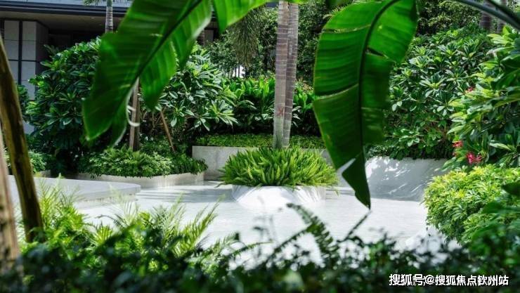缓缓流动的海浪水景、海礁植物园、约400㎡露天泳池和背后郁郁葱葱的园林,串联而成一条高颜值的艺术中庭,非常符合当下年轻人的审美。