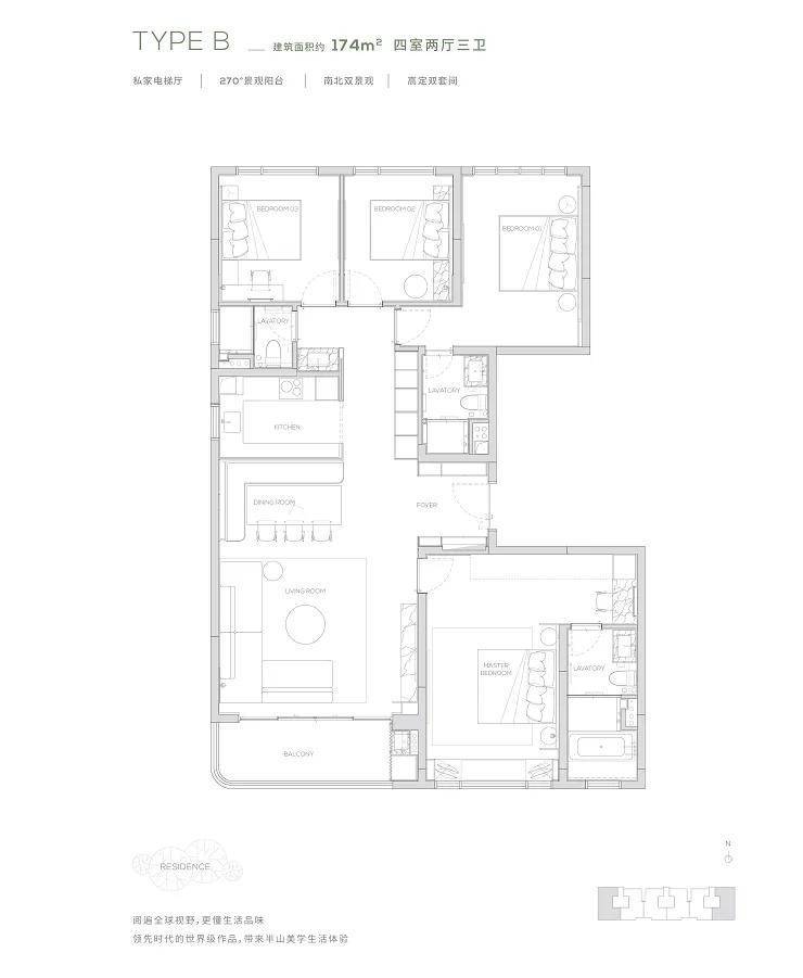 【174㎡户型】独享私家电梯厅-270度环幕观景阳台-高定双套间