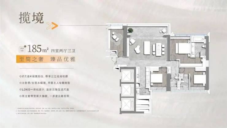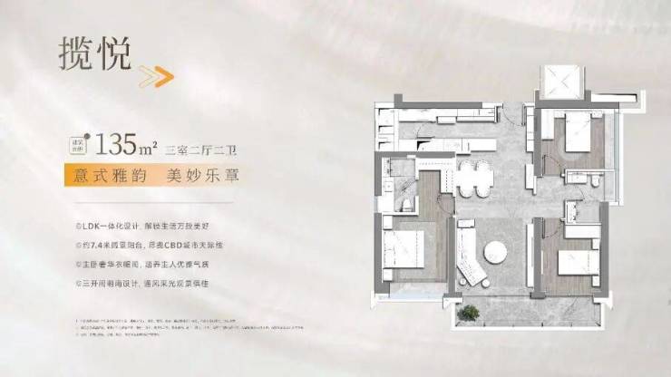 3栋(45F):3T3,135㎡(售罄)、178㎡