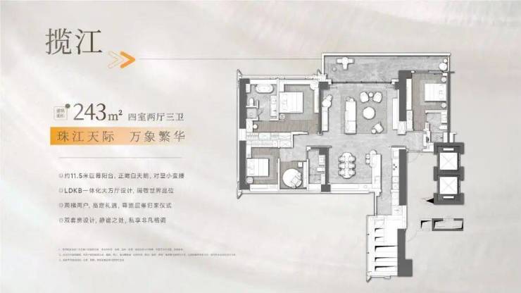 ◇项目规模:建面约69万㎡滨江万象综合体(内含约 2.2 万㎡的滨江公园、约 8.3 万㎡的高端商办、约 l.9 万㎡的配建学 校,约 26.9 万㎡万象城及约 l7 万㎡三江万象大平层等。)
