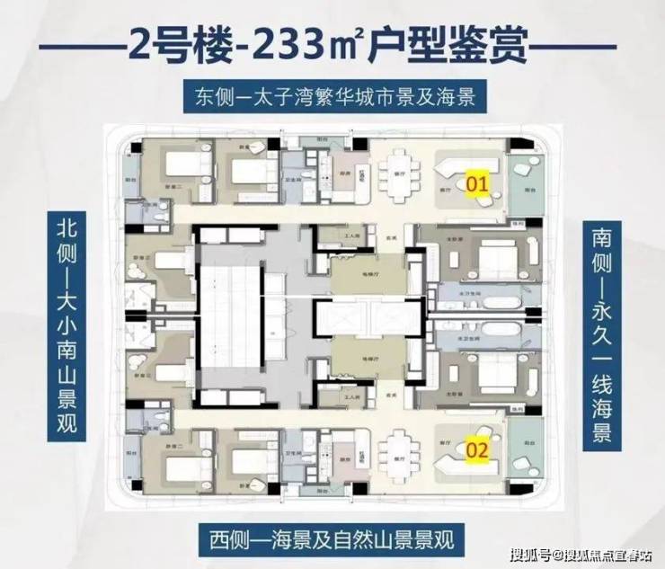 4+1海景房,户户3阳台,3.6米层高 一户双车位+专梯入户从容尊贵礼遇生活 集萃奢豪装修品质+十二大鲸系科技护航 双塔星海露台+无边游池+鲸派圈层会所 百亿太子湾170万㎡的国际顶尖封面配套