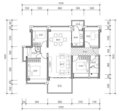 104-112㎡4房2厅2卫(以2A栋01户型112㎡为例)