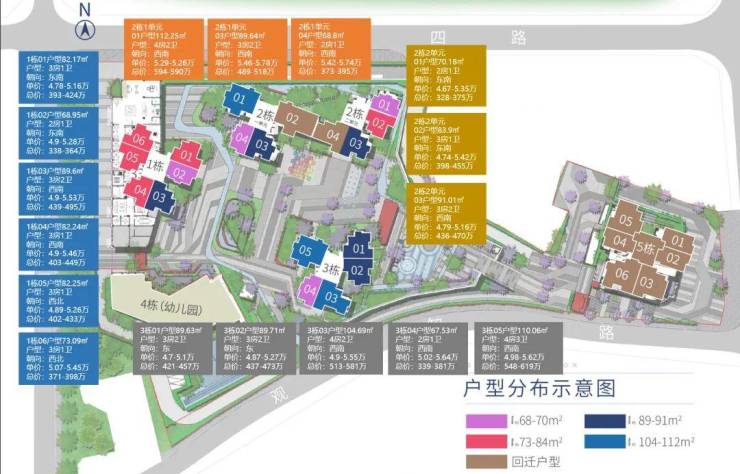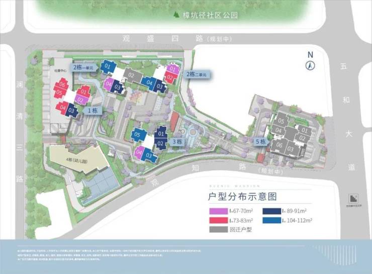 【楼栋规划】1栋、2栋、3栋、5栋为住宅,4栋为幼儿园