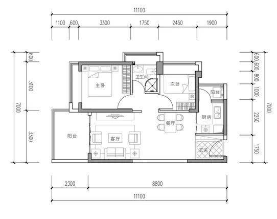 67-70㎡2房2厅1卫 (以2A栋04户型68㎡为例)