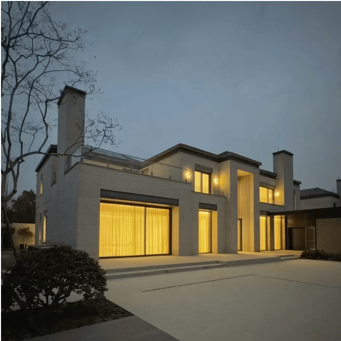 总建筑面积约951㎡,总价1.58亿,相比其他独栋别墅,S22位置更佳,一脉连着白云山,一面连着天鹅湖。总体布局采用双L型,外立面不仅有白色石材及透光玻璃、遮阳板和透明槽形玻璃,还有铜板、玻璃窗、垂直的遮阳木板。