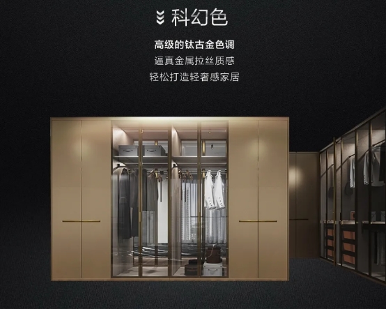 阿尔法系列以未来感的工艺、材质、花色,助力消费者打造未来感家居。50微米柔光黑科技兼让阿尔法系列具金属柔光与拉丝质感,5次晕涂印刷使得产品获得逼真的凹凸层次感,钛古金专属花色帮助人们营造空间轻奢与科技感。