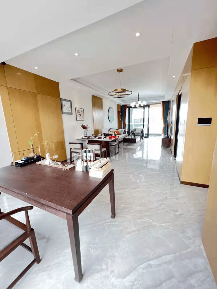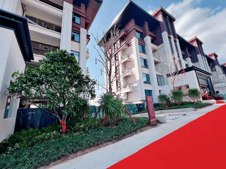 实景图:建筑风格采用新中式风格,外立面干挂石材,铝单板与真实漆相结合,贵显大气稳重