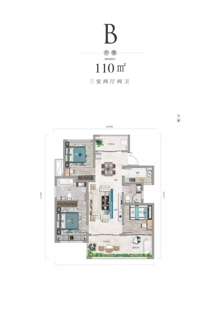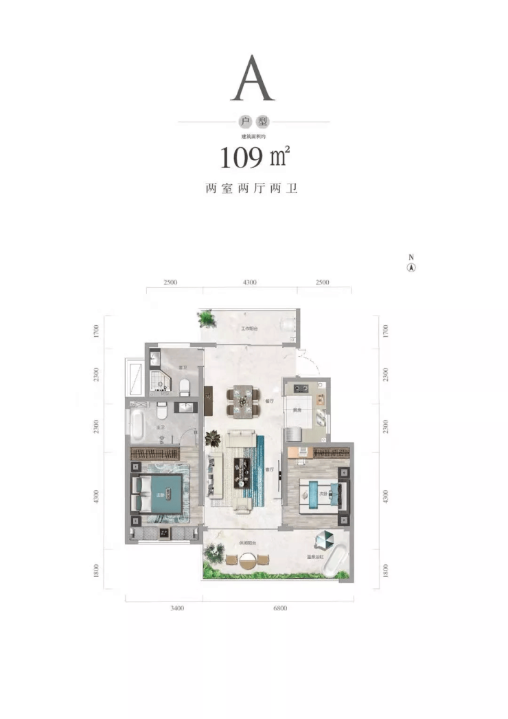 在售户型:109两房两厅两卫 110平三房二厅二卫