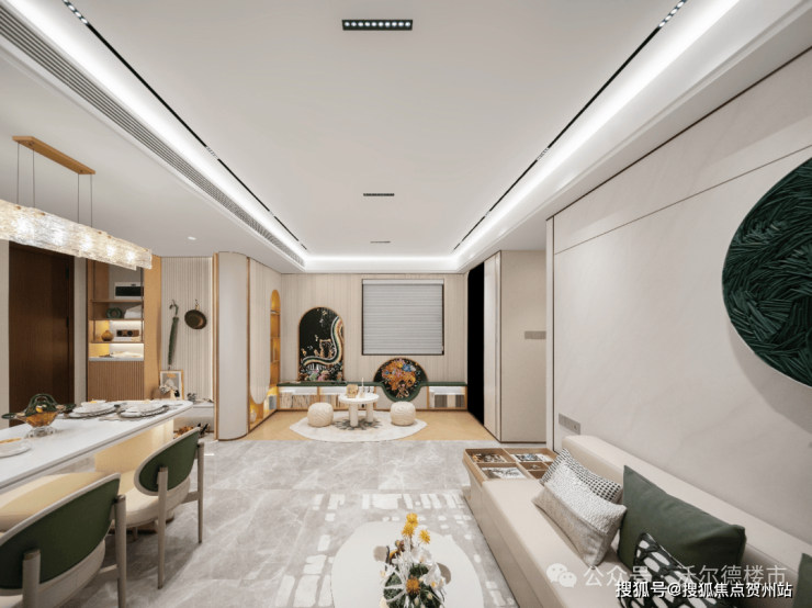 空间奢阔静谧舒居,全南向客厅及卧室;公卫干湿浴三分离,主卧270°巨幅视野