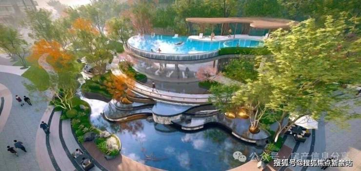 小区是往现代高端社区方向打造,步行大门是山林水石设计,而车行出入口则设计了酒店级回旋处落客区,跟「胤璞」很像。