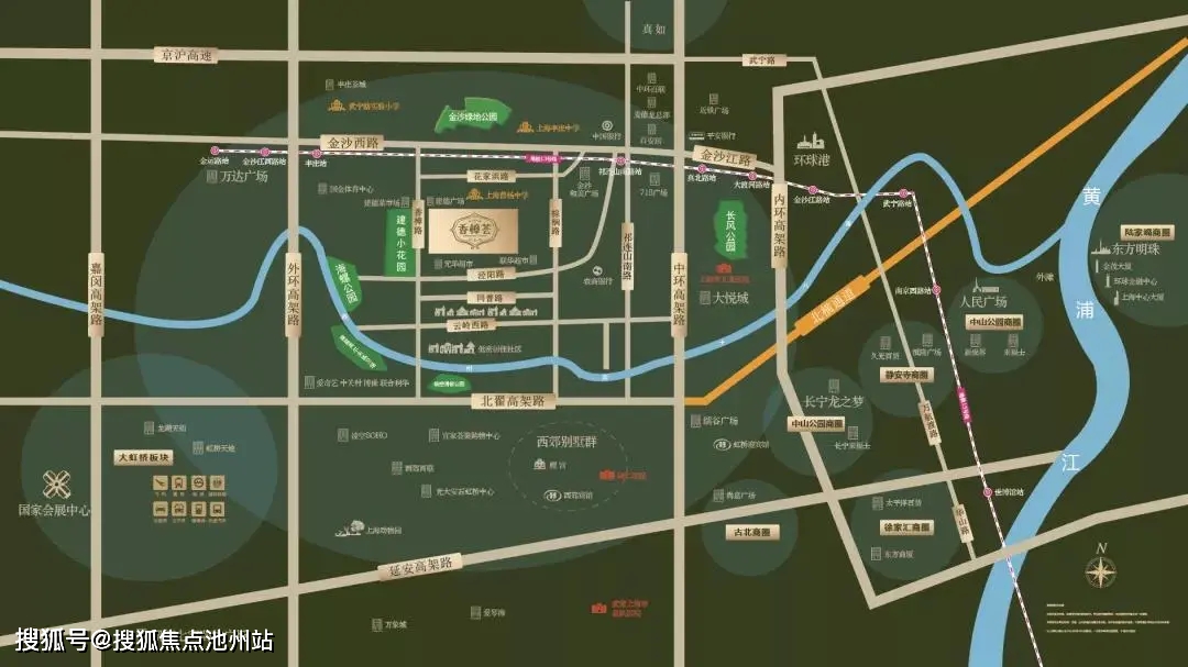 生态方面也很加分,[香樟荟]距离苏河十八弯海螺公园500米,距离金沙绿地公园700米。