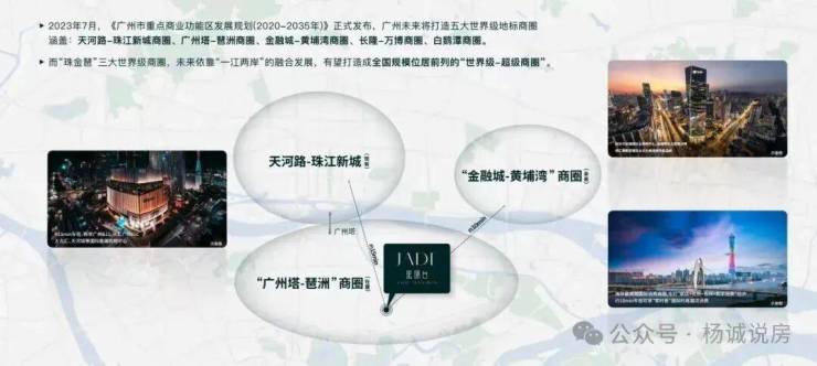 珠江新城-金融城-琶洲三大商圈形成黄金三角布局,一江两岸协同发展【交通便利】15分钟生活圈覆盖三大商圈,商务休闲举步可达【发展定位】打造具有全国影响力的世界级商圈集群,树立商业新标杆