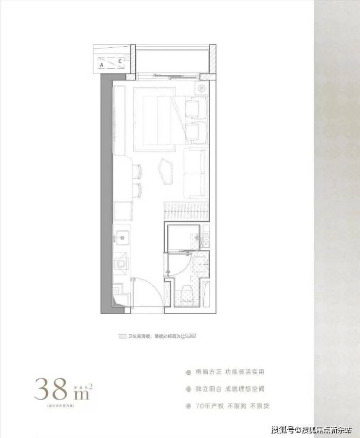 建面约38㎡,麻雀虽小五脏俱全,带阳台通燃气,卫浴干湿分离,房间更防潮,总价1字头,以最低门槛上车福田核心区,预估未来租金水平可达5500元/月。