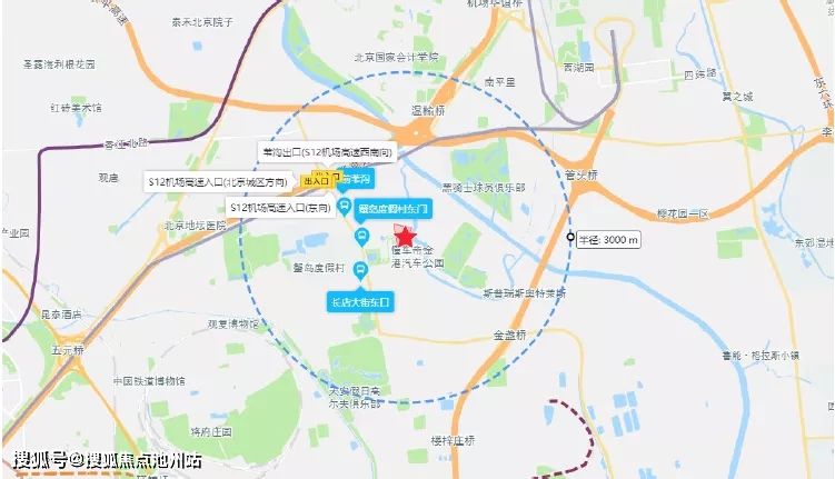 该地块半径3公里内,公共交通疏导能力较为薄弱,但道路交通设施完善;附近有公交站配套,到地块距离最近的主干道入口为S12机场入口,距离地块1.8km。