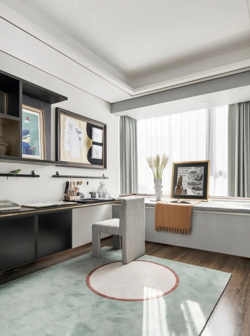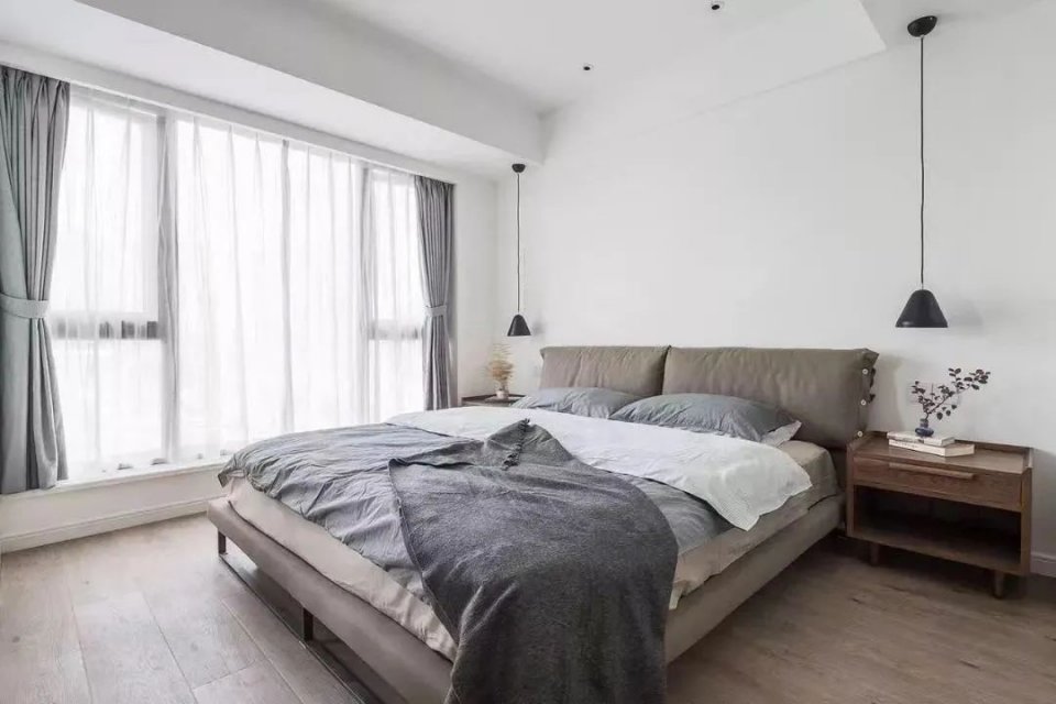 遮光窗帘:麻料或植绒材质窗帘吸音、遮光效果好,再加一层遮光窗帘(优选物理遮光,化学遮光加了涂层,夏天暴晒会有味道),让你“伸手不见五指”,助眠效果更好。
