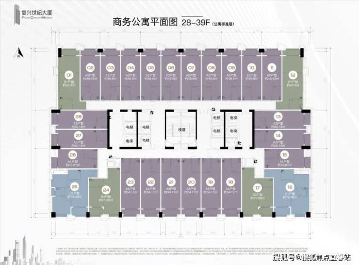 楼层分布:共39层,-2至5层为地下及裙楼商业、6-9层为商业、15-20层为办公、22-39层为公寓