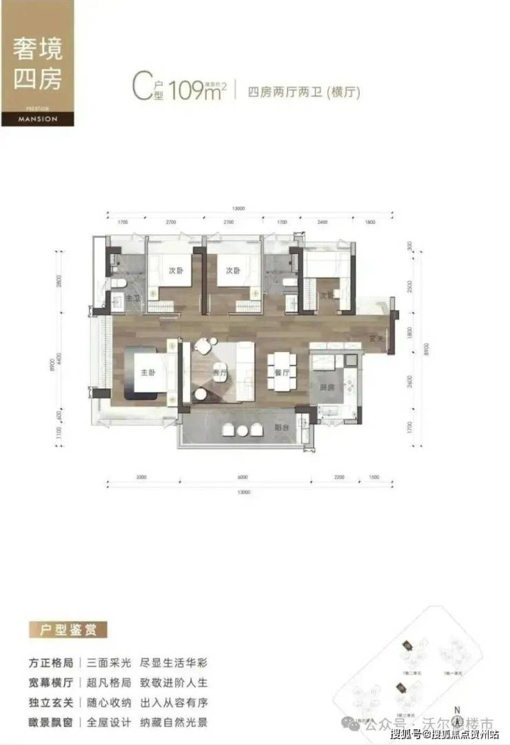 户型设计方面,梯户比为1-2,1-3单元31层高,1-4单元37层高2梯5户、1栋1单元31层高2梯6户,户型设计有95-108-109-138㎡得房率在92-98%左右