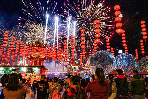 据悉,春节期间,各地方特主题乐园立足中国传统文化,创意推出贺岁光影烟花秀、新春庙会、花车巡游、舞龙舞狮、火把狂欢节等众多迎春盛典。济南方特推出巨型灯组“一眼万年‘祈福女神’”、沉浸式水上灯组“灯耀万家”以及“灯火长街”,复刻盛世长安的古韵年味;太原方特以《山海经》为主题,再度点亮网红灯组“生命之树”,并新增灯组“九尾狐”“精卫女神”,为游客打造一个山海奇幻中国年。