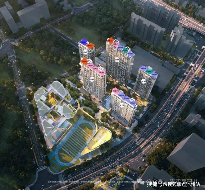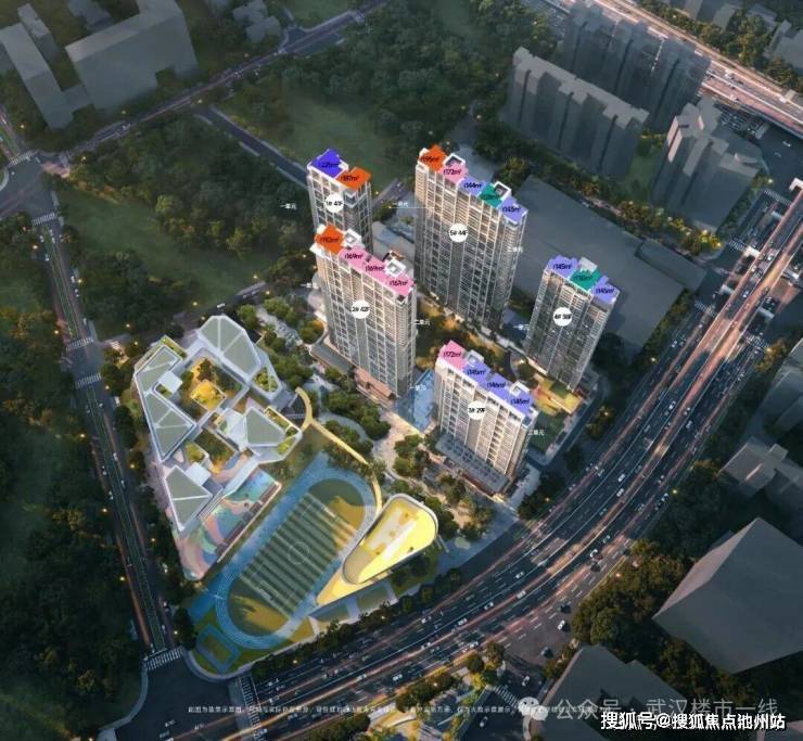 该项目总共14栋住宅、1栋写字楼、1所九年一贯制学校、1所幼儿园。11栋超高层。一期共5栋楼,1栋高层和4栋超高层,户均165㎡,定位改善。面积段为130-225㎡所有楼栋均在1F或与商业顶层间设置架空层。整体成围合式布局,中间成中央景观,前后楼间距55.6米。这个间距来说不算很大。又有是超高层和高层结合。相比现代第四代住宅和低密的项目还是有点“刚”的。