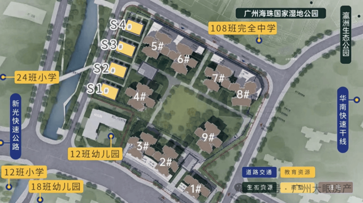 私揽约1100万平方米海珠国家湿地公园,是曼哈顿中央公园的2.5倍,名副其实的广州“南肺”;同时周边环绕约 53 万平方米海珠湖公园、瀛洲生态公园,及规划中的滨江公园,生态环境可谓得天独厚。湿地公园更荣获粤十大最美森林旅游目的地,也是第一批全国科普教育基地。