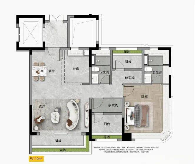 建面约108-110m²创意空间