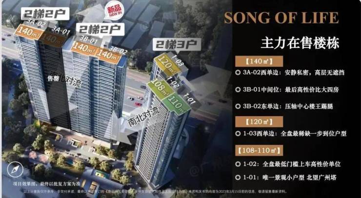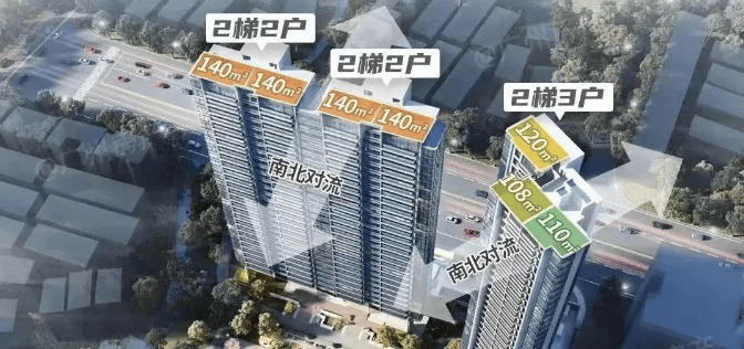 120可做四房。3栋(3A/3B)则是140方可做四房户型,板楼设计,两梯两户,是楼盘的主打户型,货量最多。