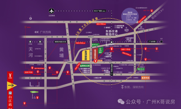 项目直线距离13号线白江地铁站仅700米,步行8分钟可达,由白江站乘坐13号线,2站黄埔,8站天河。