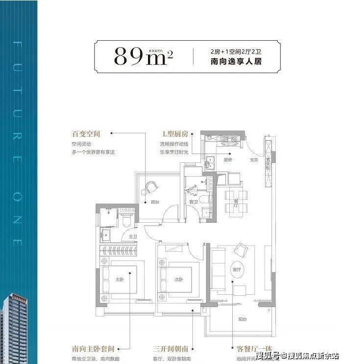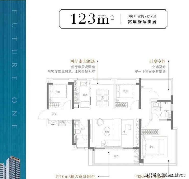 (3)主卧L型双面采光,270°江景视野
