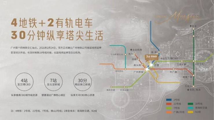 🚇4地铁:2号线、22号线、7号线、佛山2号线。4站至万博CBD、7站至北滘新城、30分钟至珠江新城。