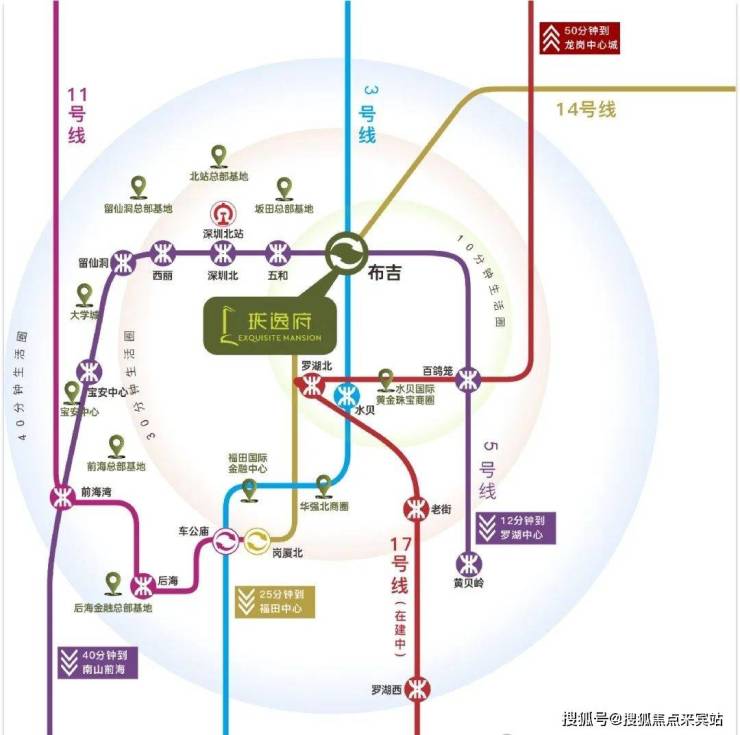 项目家门口100米的布吉枢纽站,有3/5/14号地铁线在此交汇,1站罗湖,2站福田,还有17号线“罗岗站”在建,距离约600米,该线路是从平湖开往罗湖的一条慢线。