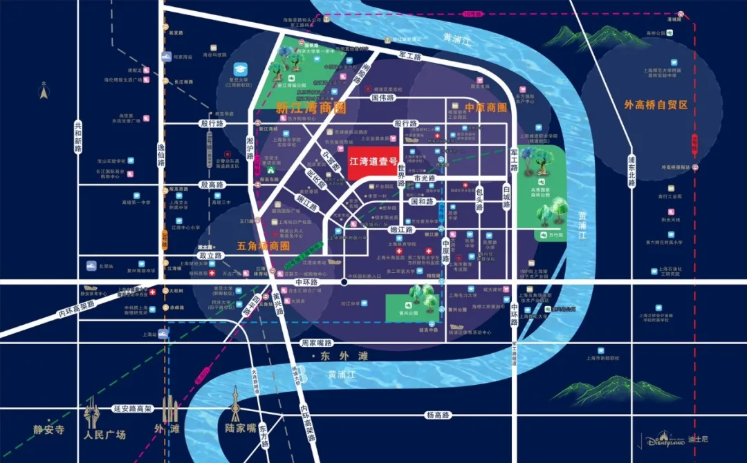 杨浦区将重点开发,新江湾片区由“铁狮门”打造的尙浦领事双子大楼,距离我们项目1.8公里,总高280米。将会成为杨浦区排名前列高楼,未来北部较高标准开发的城市综合体,落成后即将成为杨浦新的核心CBD标杆。