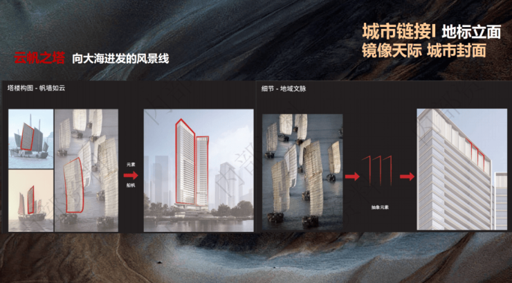 琶洲·樾 | 华樾外立面设计理念,是云帆之塔,形似扬帆起航的风帆: