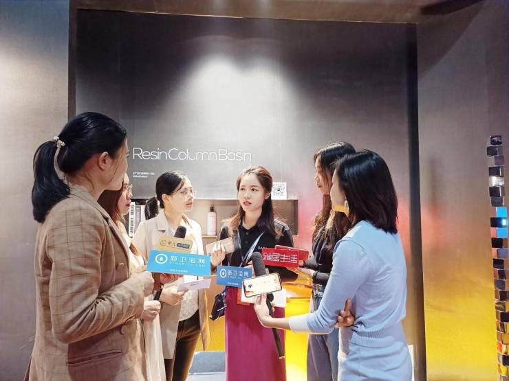 △媒体采访GABO观博卫浴品牌主管负责人何琬琪女士