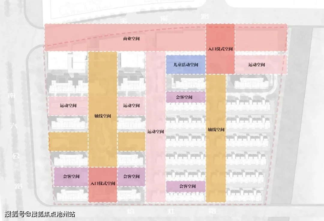 整体项目建筑设计现代风格,运用6大空间(酒店式仪式空间、轴线景观空间、会客空间、运动空间、儿童空间、商业空间)打造现代感、功能性、全景化。