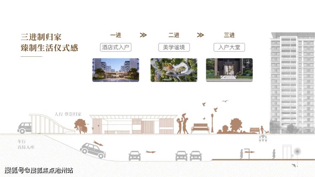 布局三进制归家礼序,从酒店式入户的归家仪式到科学动线的匠心规划,四季树木错落排布,步步成景。为业主提供复合性及趣味性的社区社交场。