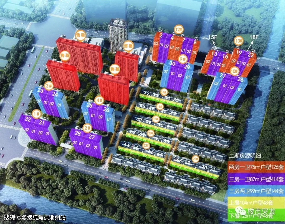 15-18F小高层建面约75-87-99㎡,192套叠加建面约100-125㎡。