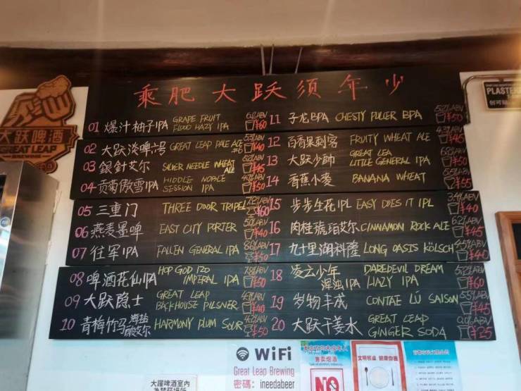 “甫子啤酒”,其原料中有四川花椒和山东的青岛大花,故从入川诗人杜甫与曲阜圣人孔子名字中各取一字,组成“甫子”。升级款“甫子新欢”更成为了大跃的招牌啤酒,金色艾尔极易入口,并且加入了长城脚下培育的有机蜂蜜。