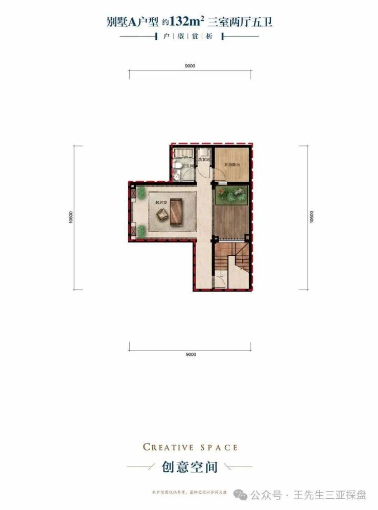 【独栋A户型】约 132㎡ 三室两厅五卫