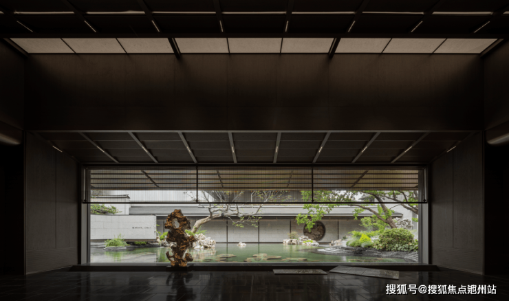 门廊截取寄畅园飞檐翘角,宽庭以仿竹金属格栅重构世家仪轨。御窑金砖铺就归家路,园林泉景精准框入景窗,如古法拓印,落于石庭。泉影琉璃太湖石晨昏叠错,出入间,皆是江南四百年世家风骨。