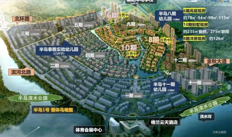项目一共分12期开发,目前1期、2期、3期、4期、5期、11期和8期已经开发出售,居住氛围非常浓厚。半岛1号6期位于项目的北侧,占地24644㎡