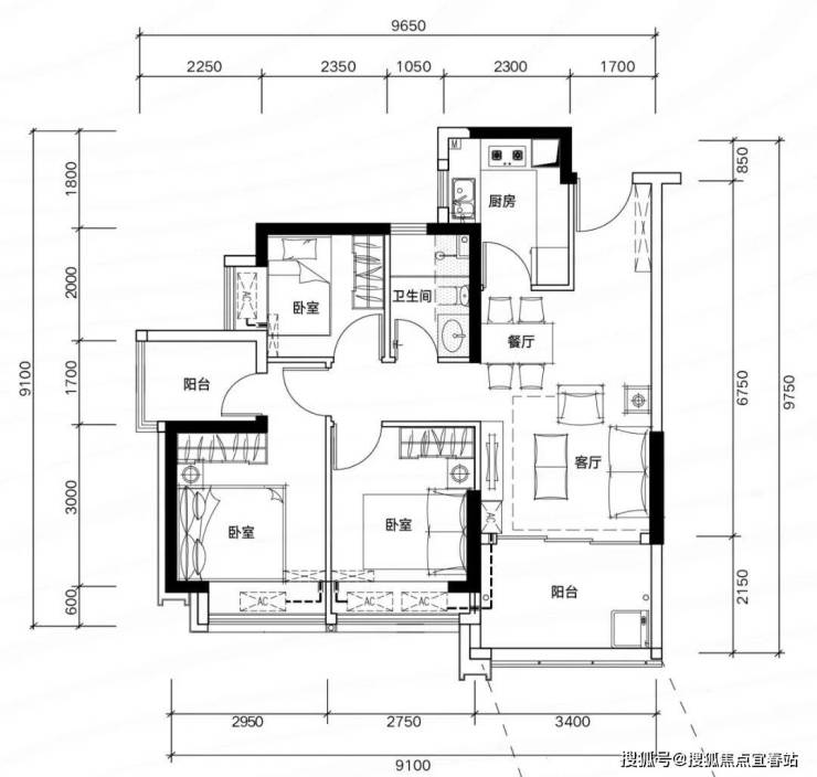 ✅ G03户型:约81㎡ 三房两厅两卫:
