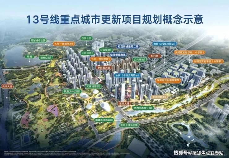 项目位于广深港科创走廊重要节点的“世界一流科学城”光明,归属凤凰城街道,邻建面约383万㎡13号线重点城市更新单元(在建),占位光明城市发展的“价值洼地”,同享磅礴产业规划红利。13号线重点更新项目(在建),总投资约420亿元,其体量约为光明城站TOD的25倍。将结合13号线月亮路站塑造、城市蓝绿公园网络提升、产城空间更新,无限链接生产、生活、生态要素,建设成光明区“三生融合示范区”。