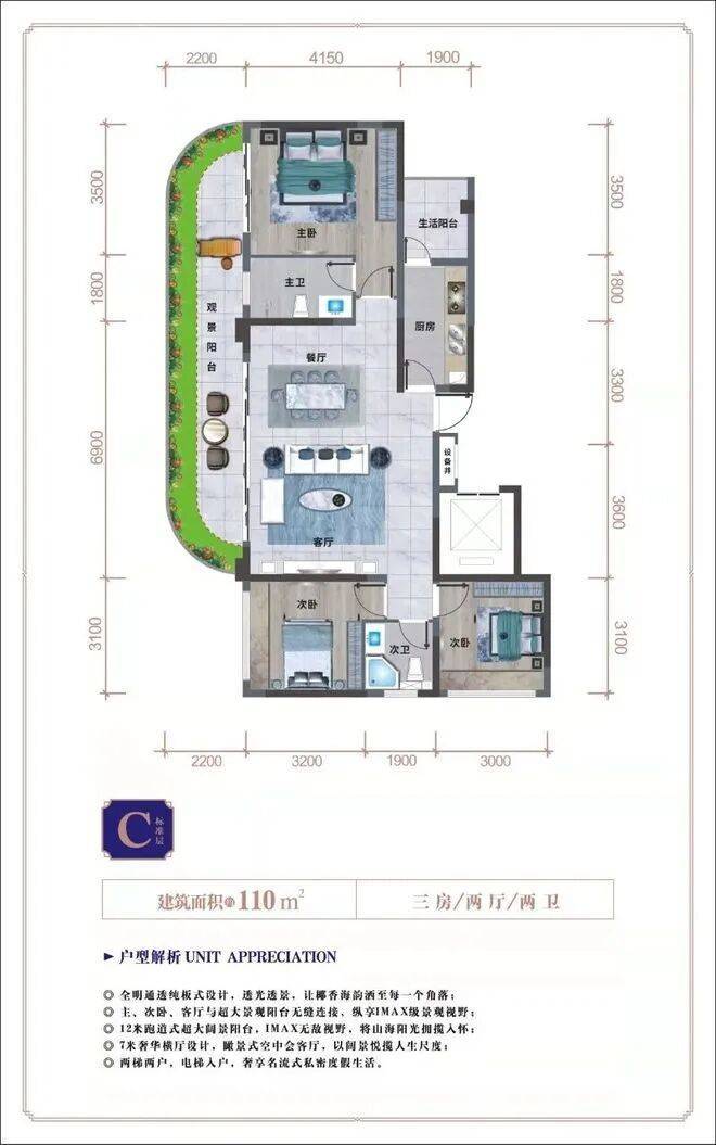 户型区间:约104-110㎡轻奢海居宽境洋房