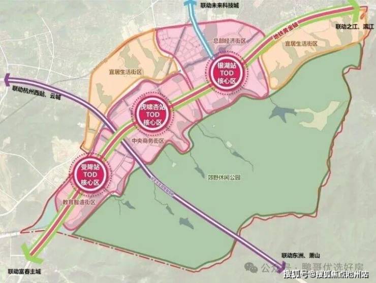 NO.2【大盘钜制 都会封面】·银湖科技城TOD标杆大盘 无缝接驳地铁6号线项目规划打造约37万㎡TOD大盘钜制,地铁6号线银湖站上盖,4站之江、7站直抵国际滨,一脉彩虹快速路,瞬息即达之江、滨江和杭州主城。沿富闲路直达未来科技城。