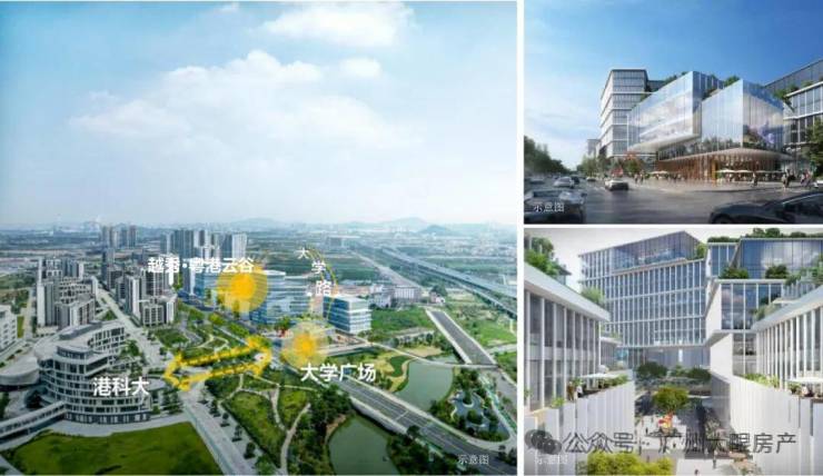 “一个广场”——大学广场呼应港科大红鸟广场,凸显项目整体门户形象,营造“三区合一”的起点;