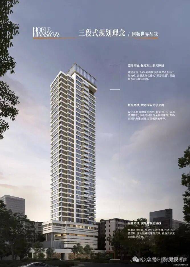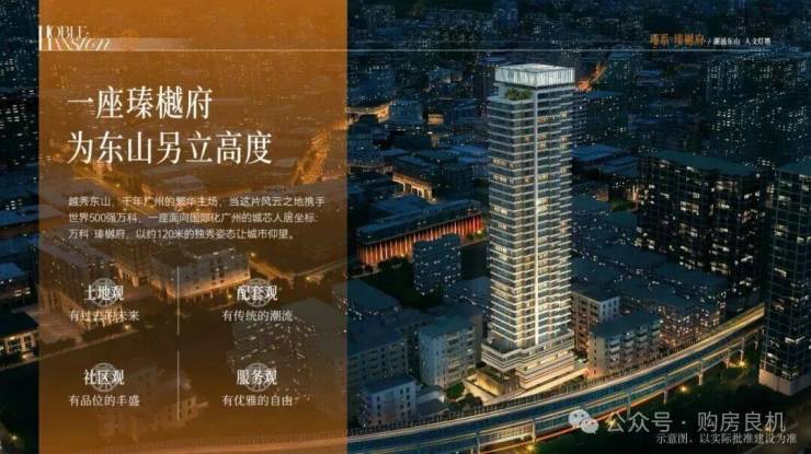 ◎越秀东山新天际线,约120米地标住宅◎灵感源自瑰丽酒店,铝板+LOW-E玻璃结合