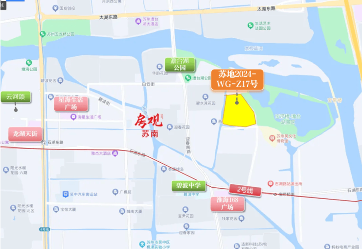 鸿湖上,即苏地2024-WG-Z17号,位于吴中西至下田浜,南至商城大街、北至白云街、东至下田路,毗邻澹台湖景区,一线澹台湖+京杭运河,风景秀丽。