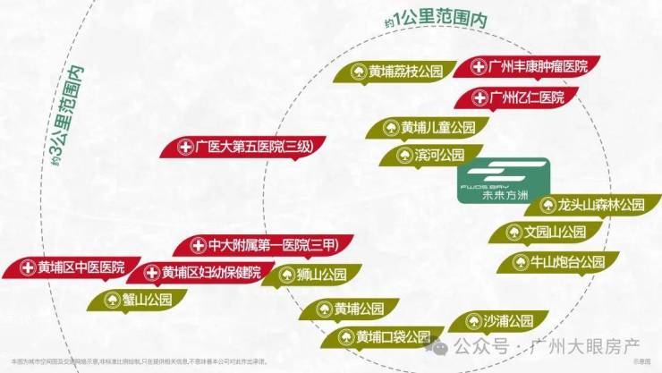 3公里休闲步行,文园山公园、牛山炮台公园、龙头山森林公园,以及黄埔儿童公园、黄埔荔枝公园、滨河公园、黄埔公园,沙浦公园,罕见城市中心绿洲环绕