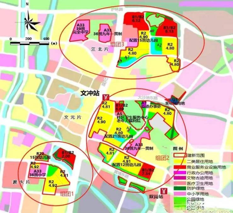 整个旧改三个组团规划了4所幼儿园,1所小学,2所九年制学校,还有1所完全中学【初中+高中】