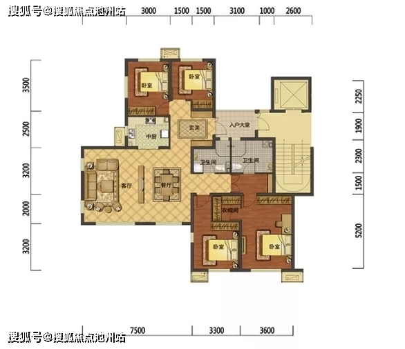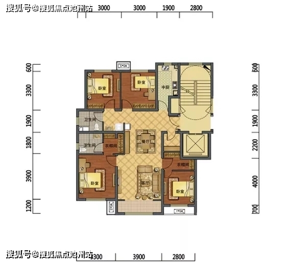 130平四居可以说是很经典的一个户型了,南北通透,四个卧室基本在四个角,互不干扰,主卧室独卫套间,有衣帽间;餐客一体,空间更大,明厨明卫,就是厨房进深稍微有点长,不过也不是问题,整体看来是个不错的户型。
